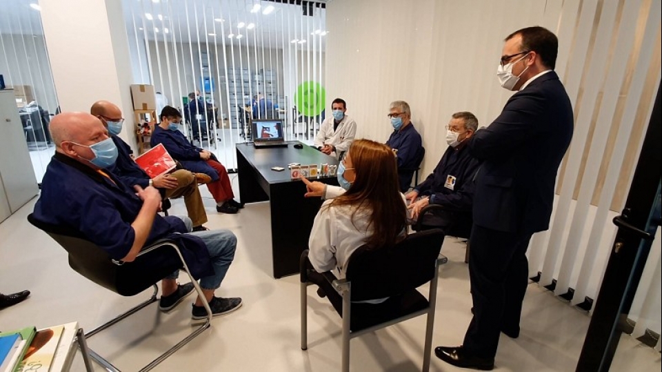 Sergio Murillo ha realizado este anuncio en el centro ocupacional Rafaela María donde el próximo 1 de junio pondrán en marcha sus 10 plazas con apoyos para otras tantas personas usuarias con síntomas prematuros de deterioro o envejecimiento. Precisamente este centro acaba de estrenar nuevas instalaciones en el barrio de San Ignacio de Bilbao, tras trasladarse desde su anterior ubicación en el barrio bilbaíno de Zorroza. El centro ofrece un servicio ocupacional y también funciona como centro especial de empleo. A él acuden diariamente 60 personas con discapacidad que reciben apoyo de 15 profesionales.